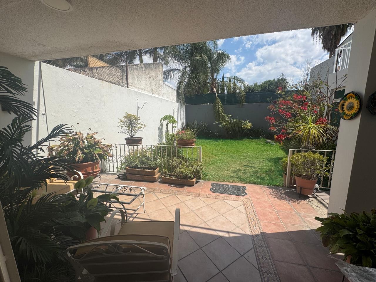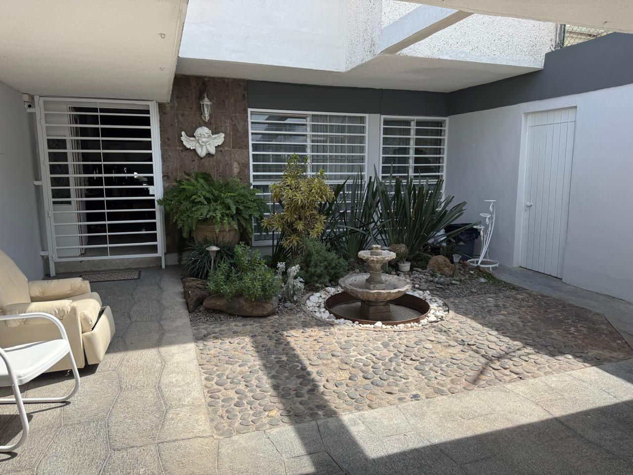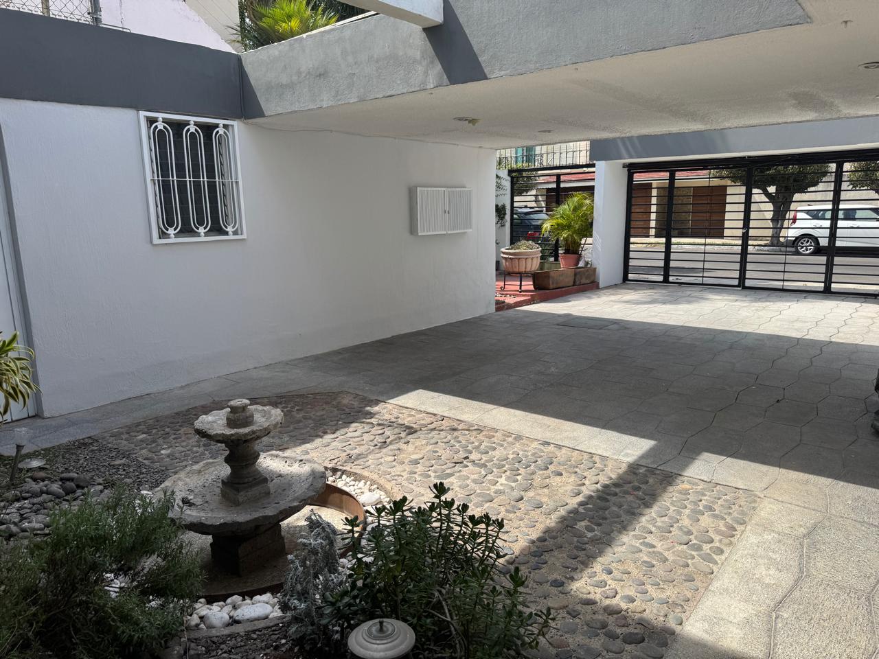 Cochera con capacidad para 5 autos, amplio recibidor, sala, comedor, cocina integral, antecomedor, área de lavado y cuarto de servicio. Dispone de una recámara en planta baja con baño completo, además de estudio y un segundo recibidor. En el exterior, ofrece una agradable terraza y un amplio jardín de aproximadamente 100 m², ideal para reuniones o área de descanso.