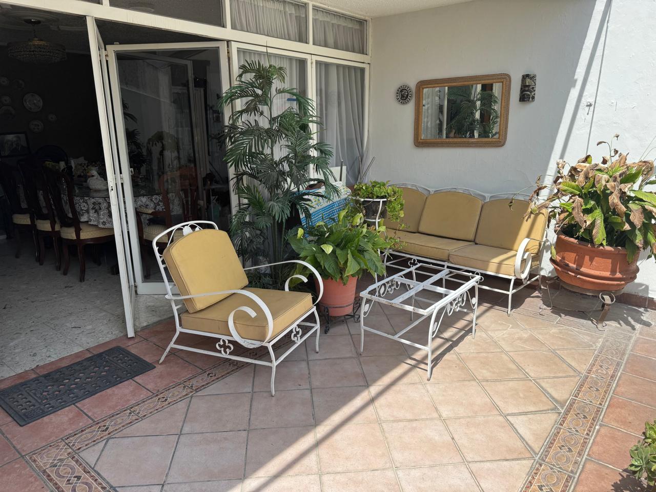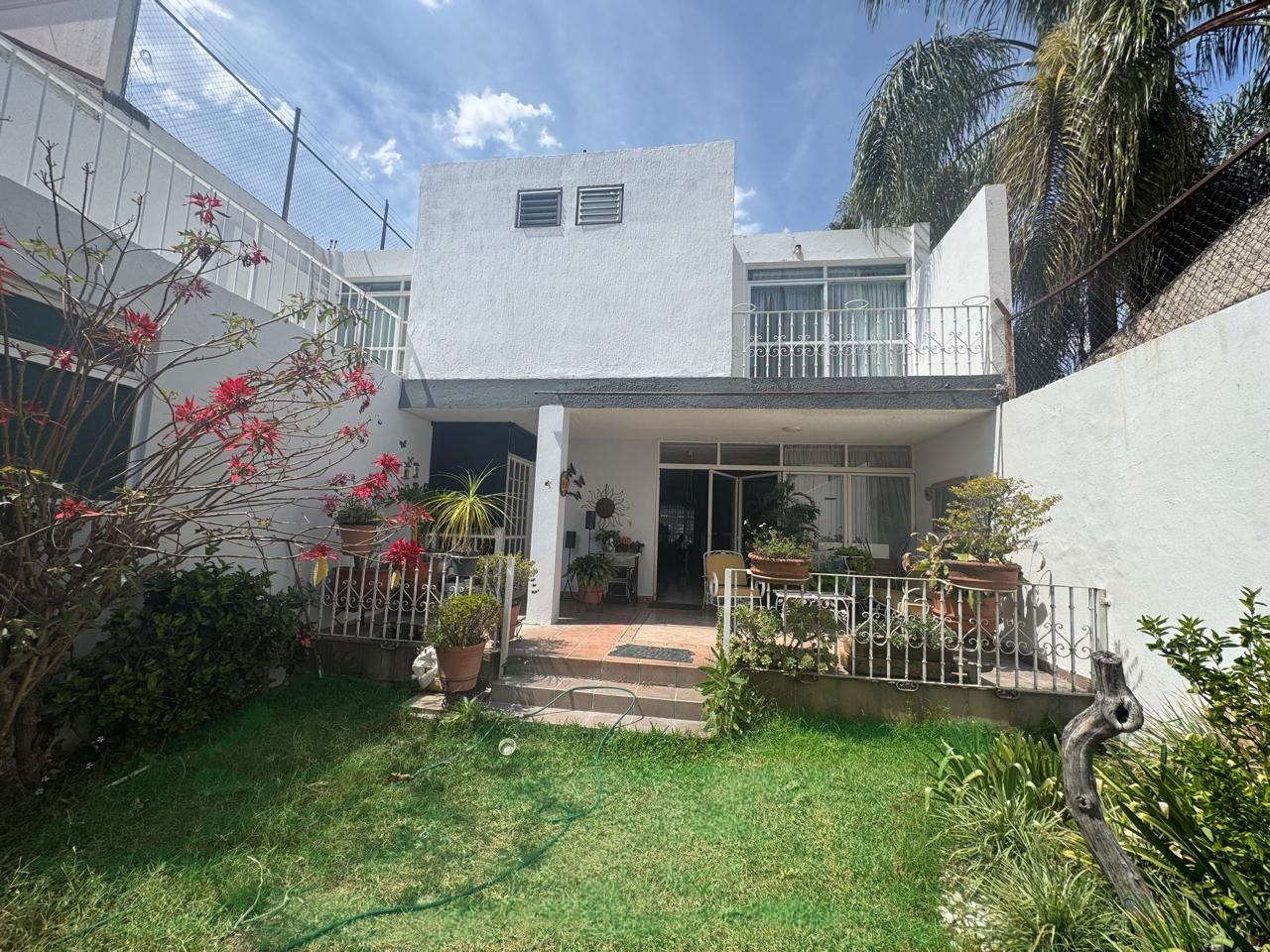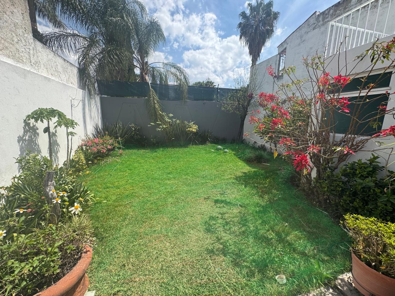 Cochera con capacidad para 5 autos, amplio recibidor, sala, comedor, cocina integral, antecomedor, área de lavado y cuarto de servicio. Dispone de una recámara en planta baja con baño completo, además de estudio y un segundo recibidor. En el exterior, ofrece una agradable terraza y un amplio jardín de aproximadamente 100 m², ideal para reuniones o área de descanso.