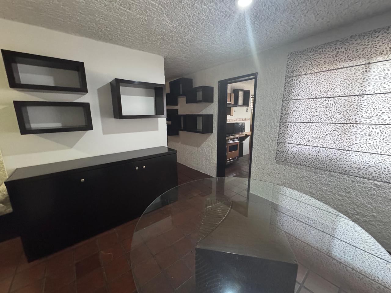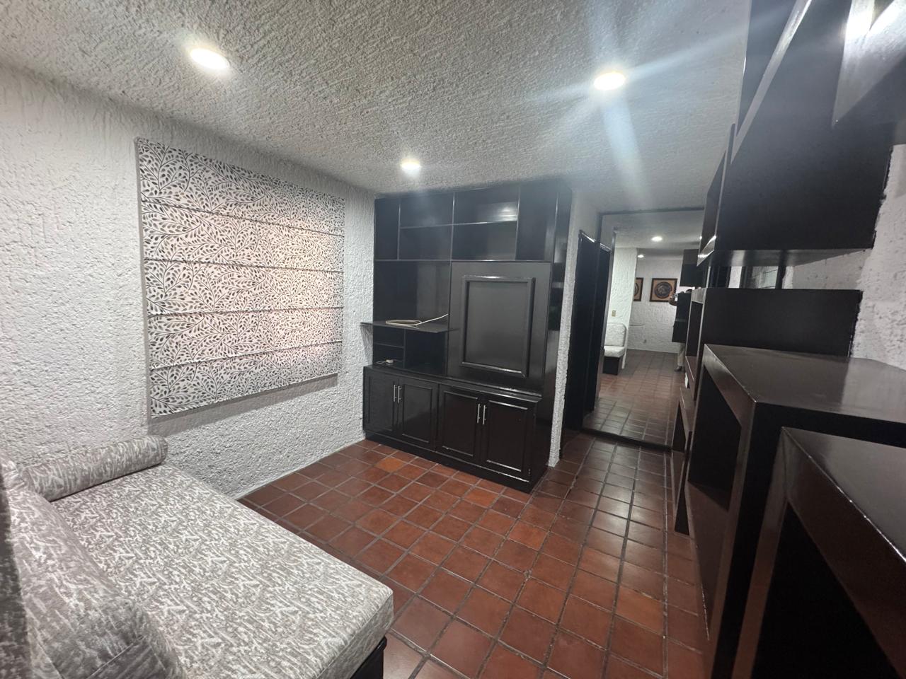 La propiedad se ofrece semi amueblada y cuenta con una distribución funcional que incluye sala, comedor, cocina integral equipada con refrigerador y microondas, área de lavado y un espacio versátil de estar de TV y/o estudio, equipado con mueble empotrado y escritorio.